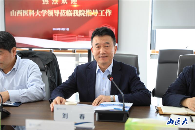 会上,晋城市人民医院党委书记畅晋军汇报了医院当前建设情况。刘春对晋城市人民医院目前建设所取得的成绩表示肯定,他指出,将进一步加强与医院的合作,新质生产力的培育需要高校与医院紧密协作,共同打造优质的教学实践平台。只有不断将新技术、新理念引入医院建设,才能推动地方医疗卫生事业实现高质量发展。