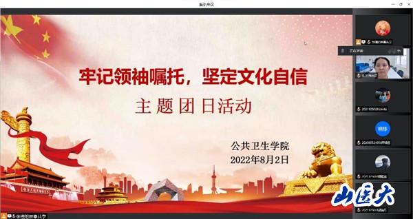 为引导学生更好地传承中华优秀传统文化,增强历史自觉,坚定文化自信,8月2日晚,公共卫生学院线上举办了“牢记领袖嘱托,坚定文化自信”主题团日活动。公共卫生学院党委书记张志红、学院学生会成员以及各年级团支部书记参加,活动由分团委书记张瑾主持。