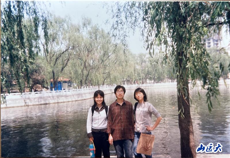 大学同学在迎泽公园(均为校报学生记者,左一为武丽芳同学,工作于重庆医科大学第二医院,右一为田晶璧同学,工作于山西省卫生健康委员会,中间为作者)