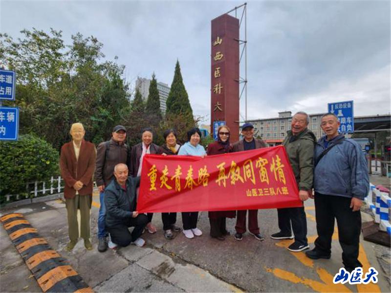 10月中旬,我校1974年入学的卫生系三队八班、九班的校友返回太原来到母校,共叙往日情谊,畅谈入学50年来各自的经历、老师的教诲、领导的嘱托和家庭的温暖。校友们重访了校园,畅叙和回顾了校、系领导及各专业老师对同学们的关怀和教育。