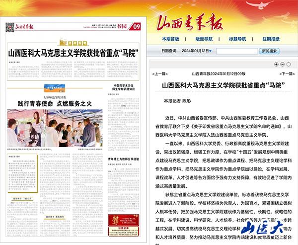 山西青年报 | 山西医科大马克思主义学院获批省重点“马院”